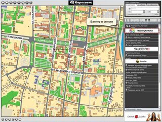 Хороший вид напоминающей рекламы, укрепляет позиции брэнда в сознании клиентов и вызывает интерес пользователей, которые работают с картой. Очень эффективен в совокупности с визиткой и баннером в списке организаций. Бывают немасштабируемые (видны при любом размере карты) и масштабируемые (появляются при приближении до улиц).