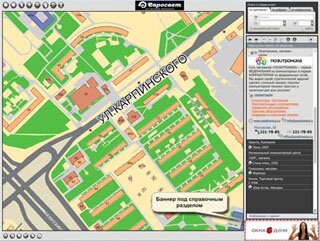 Привлекает внимание к вашей компании всей аудитории, а не только целевой. Баннер меняется каждые 5 секунд, находится между функциональной панелью Windows (содержащей дату, время, переключатель языка и т.д.) и списком организаций – часто попадает в поле зрения.