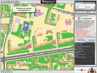 Появляется в специальном окне в момент выхода из программы iMap и находится до момента нажатия на кнопку «Выход». Принцип ссылки на презентацию такой же как и при загрузке. Разница в том, что в окне один баннер, что позволяет сконцентрировать 100% внимания именно на вашей компании.